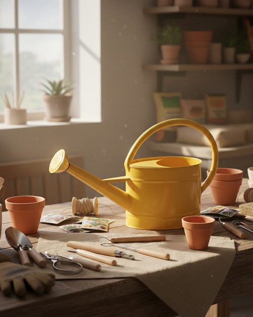 鮮やかなイエローカラーが特徴のジョウロは、ガーデニングを楽しく彩ります!水やりがしやすいように設計された注ぎ口は、植物に優しく必要な水分をしっかりと届けます。